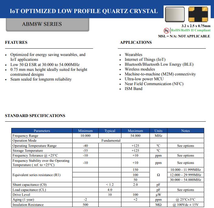什么使IoT打勾? Abracon晶振的低等效串聯(lián)電阻(ESR)和低負載電鍍電容(CL)晶體是綠色和節(jié)能MCU和便攜式通信的理想選擇芯片組。 在降低功耗的競爭中,許多片上振蕩器正在被匱乏輸出驅動,通常不能使用標準晶體維持振蕩。 Abracon的最新系列用于微功率應用的石英晶體克服了這些挑戰(zhàn)。