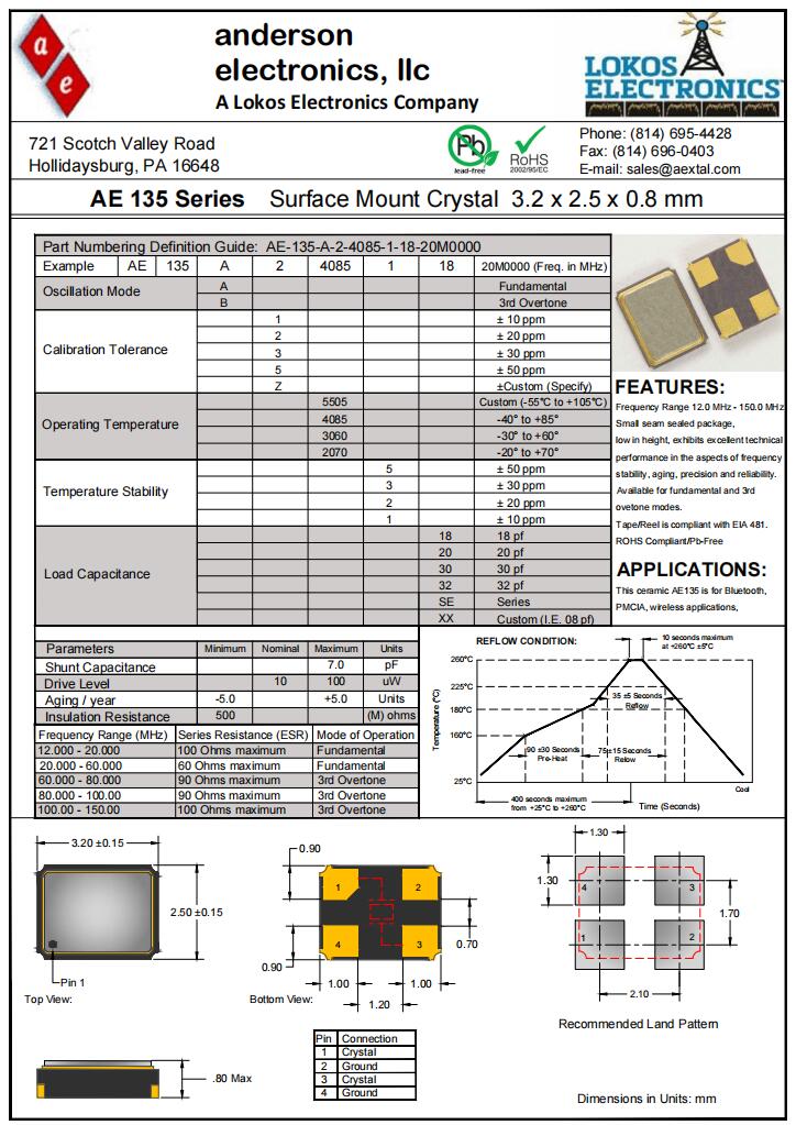 美國(guó)安德森晶振|AE-135-A-1-4085-2-20-18M4320|3225mm晶振規(guī)格表