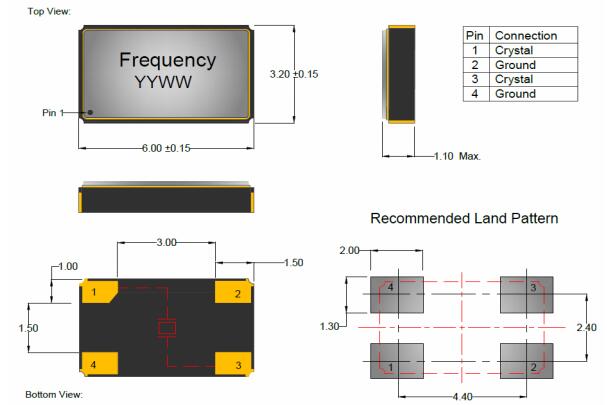Anderson晶振|AE232陶瓷晶體|A232-A2-4085-3-18-25M000尺寸圖