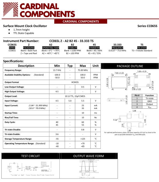 卡迪納爾進口晶振,CC065S貼片有源晶振,CC065LZ-A2B245-16.000TS晶振