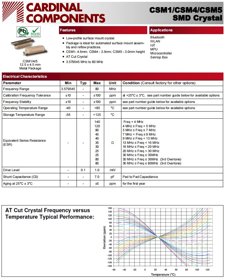 | CSM1Z-A5B2C3-40-14.31818D18 | Cardinal晶振 | CSM1 | MHz Crystal | 14.31818MHz |
