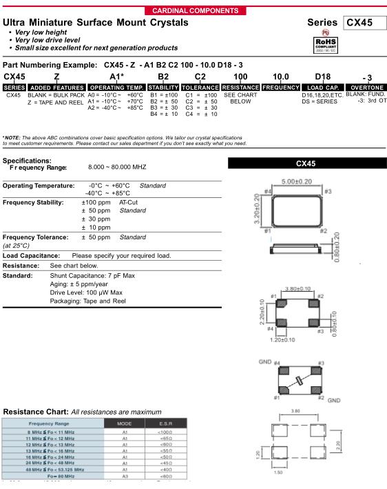 更多>>美國(guó)Cardinal晶振,CX45四腳晶振,CX45Z-A1B3C3100-12.0D18-3晶振