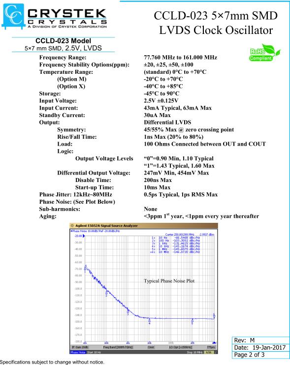 更多>>CCLD-023差分振蕩器,Crystek晶振,CCLD-023X-50-120.000晶振
