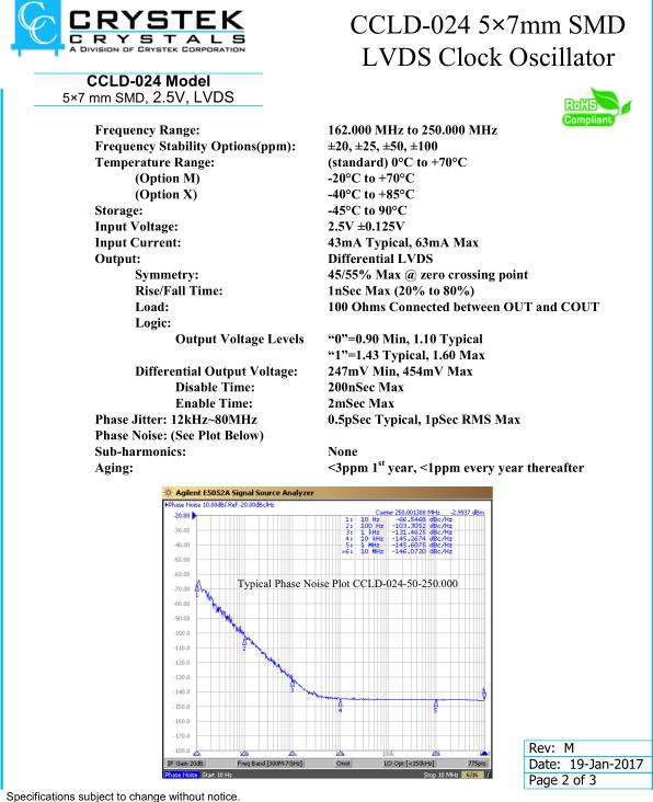 | Phase Jitter: 12kHz~80MHz | 0.5pSec Typical, 1pSec RMS Max |