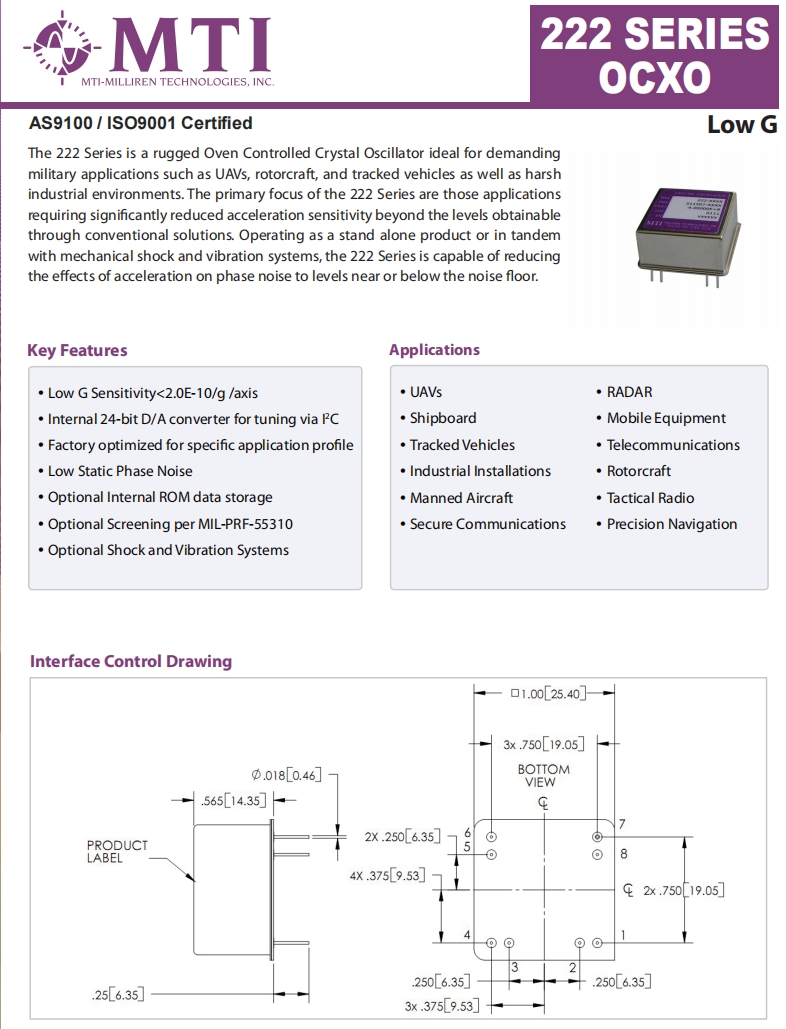 領(lǐng)先全球的MTI-Milliren新推出了適合苛刻軍事應(yīng)用的222系列恒溫晶體振蕩器