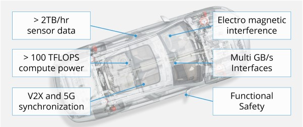 自動(dòng)駕駛?cè)匀皇亲钪匾钠囑厔?shì)之一。雖然該行業(yè)仍處于2級(jí)和3級(jí),但驅(qū)動(dòng)自動(dòng)化正在快速發(fā)展,4級(jí)正在迅速接近。隨著電子系統(tǒng)變得越來越復(fù)雜,并且增加了更多的傳感器來實(shí)現(xiàn)自動(dòng)化,車輛每小時(shí)可以產(chǎn)生超過20TB的數(shù)據(jù)。這種數(shù)據(jù)洪流需要無縫通信和高級(jí)處理能力,以及高達(dá)100TFLOPS的計(jì)算能力。