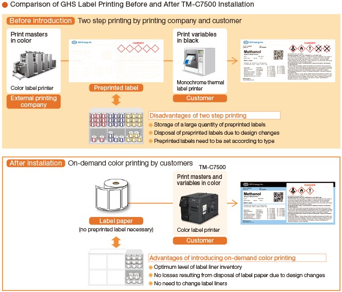 1.有必要為不同類型的化學(xué)品準(zhǔn)備幾種預(yù)印標(biāo)簽.此外,印刷承包商施加了最小的印刷量,導(dǎo)致庫存管理問題.2.處理通過設(shè)計變得過時的標(biāo)簽的成本變化.3.打印條形碼需要時間. 為了解決客戶面臨的這些問題,愛普生晶振集團(tuán)開發(fā)了TM-C7500的產(chǎn)品計劃,重點是實現(xiàn)色彩,高速度和高分辨率,以及能夠移動到能夠?qū)崿F(xiàn)平滑,按需彩色標(biāo)簽打印的環(huán)境.利用客戶現(xiàn)有的標(biāo)簽打印環(huán)境.