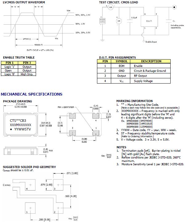更多>>CB3LV-3I-12M000000,CTS西迪斯晶振,7050有源四腳晶振