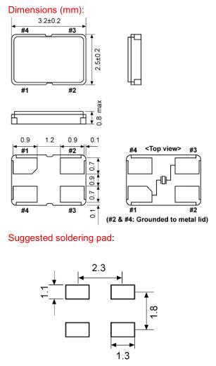 standard ±30 ppm available ±10 ~ ±50 ppm |