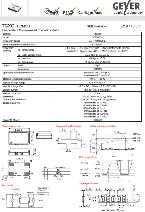 更多>>GEYER格耶晶振,KXO-83有源晶體振蕩器,TCXO溫補(bǔ)晶振