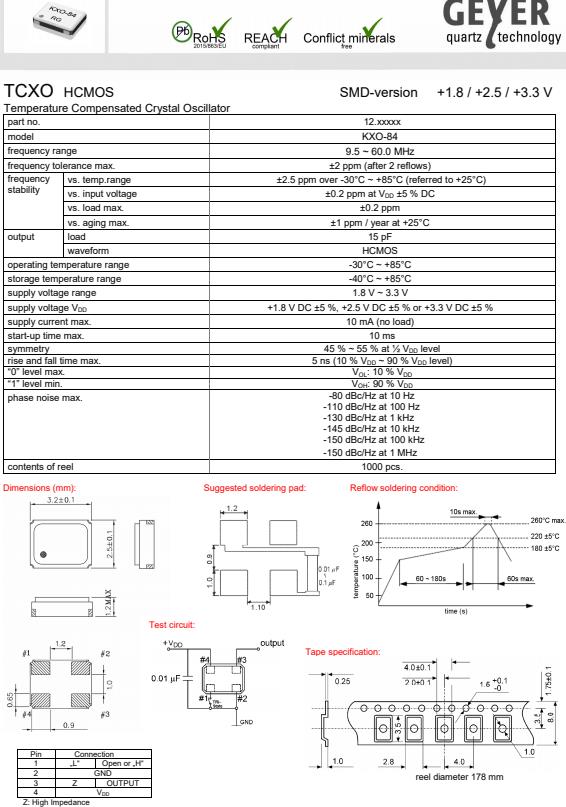 | initial frequency tolerance max. | ±2 ppm (after 2 reflows) | |
