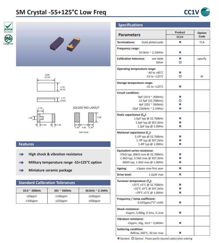 | 頻率溫度特征 | f_tem | ±30ppm over -40 to +85°C ±100ppm over -55 to +125°C | 超出標準的規(guī)格請聯(lián)系我們. | |