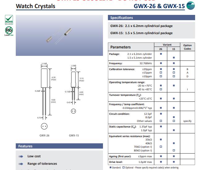 更多>>高利奇晶振,GWX-15晶振,32.768系列晶振