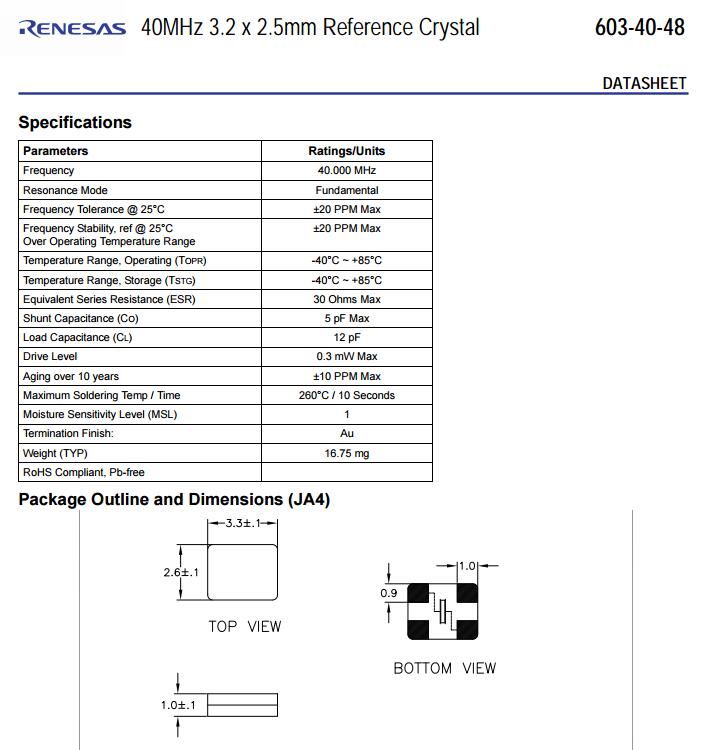 IDT晶振,603-40-48JA4I晶振,40M四腳晶振