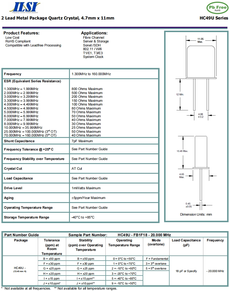 | ILCX13-HF5F18- 48.000 MHz | ILSI | ILCX13 | -40°C ~ 85°C | 48 MHz | ±20ppm | 18 pF |