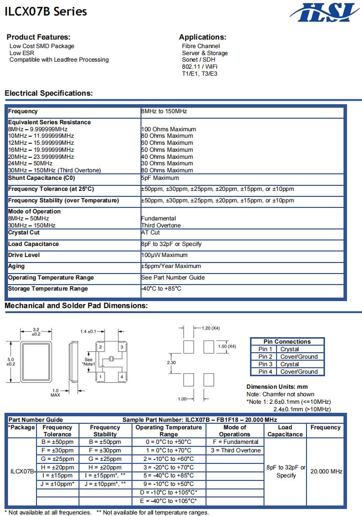 | ILCX07-HB3F18- 20.000 MHz | ILSI | ILCX07 | -20°C ~ 70°C | 20 MHz | ±20ppm | 18 pF |