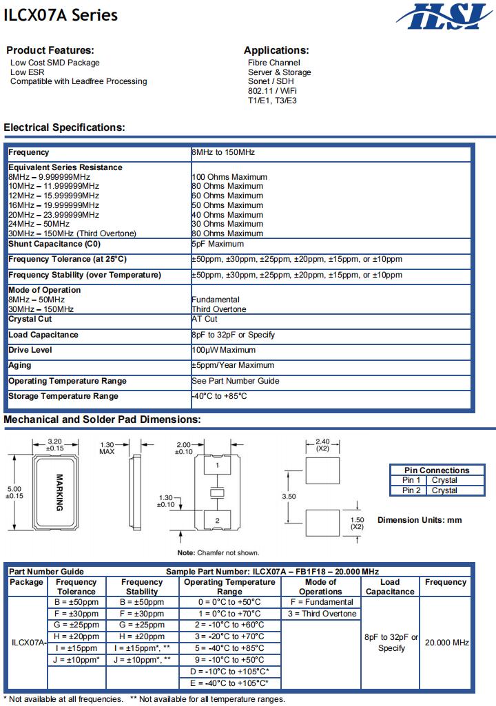 | ILCX07-FB3F13-16.000MHz | ILSI | ILCX07 | -20°C ~ 70°C | 16 MHz | ±30ppm | 13 pF |