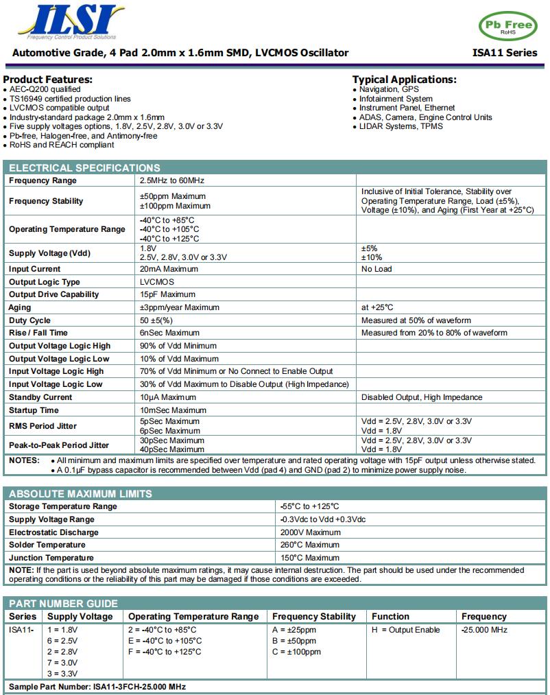| ILCX13-HF5F18- 25.000 MHz | ILSI | ILCX13 | -40°C ~ 85°C | 25 MHz | ±20ppm | 18 pF |