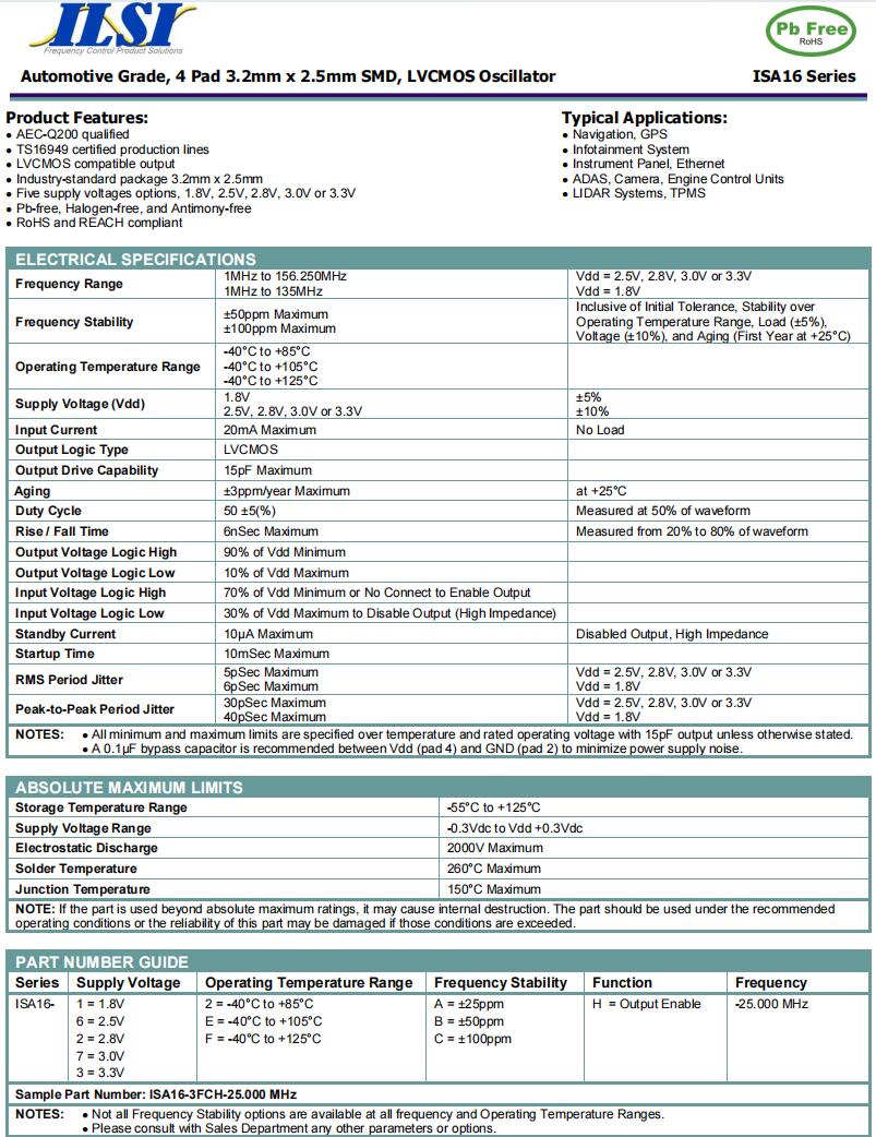 | ILCX13-HF5F18- 25.000 MHz | ILSI | ILCX13 | -40°C ~ 85°C | 25 MHz | ±20ppm | 18 pF |