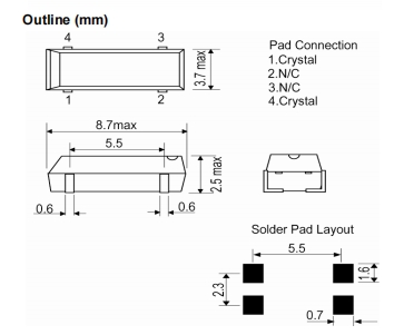 IQD音叉晶振,85SMX千赫晶體,6G相關(guān)設(shè)備晶振尺寸圖