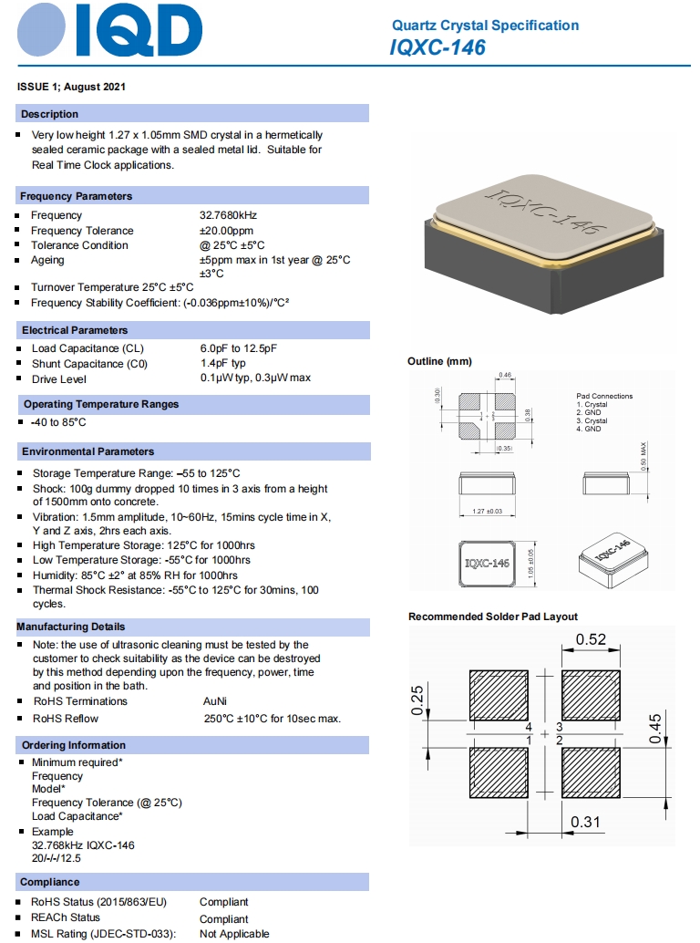 英國IQD晶振,IQXC-146石英晶體,6G無線網(wǎng)絡(luò)晶振規(guī)格表