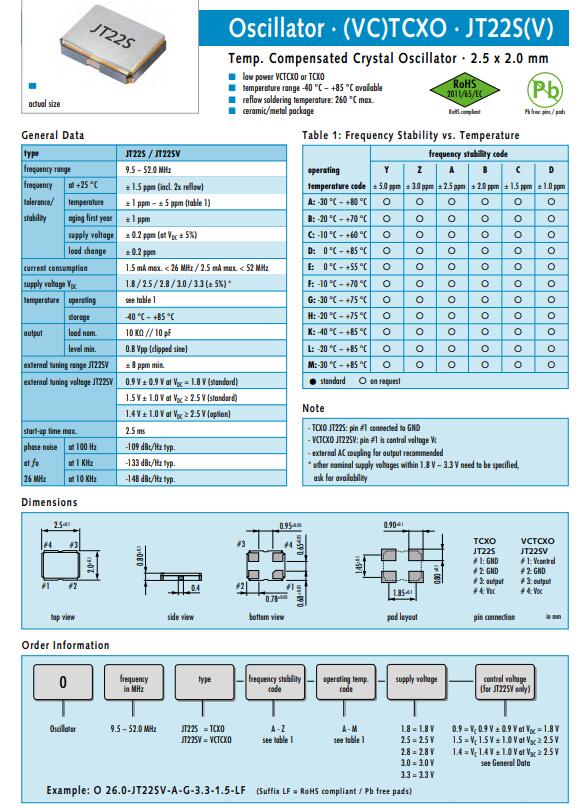 | 型號 | JT22S/JT22SV晶振 (TCXO) | |