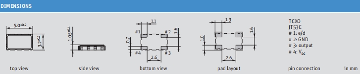 Jauch溫補(bǔ)晶振,O 26.0-JT53C-A-G-3.3-LF,6G移動(dòng)無線電晶振尺寸圖