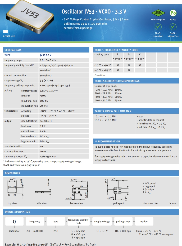 O 54.0-JV53-B-3.3-10-T1-LF,JAUCH品牌,6G基站晶振尺寸圖