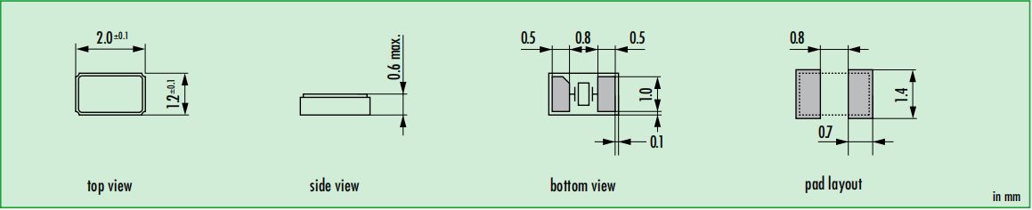 Q 0.032768-JTX210-9-20-T3-LF,32.768KHz,20PPM,9PF,-40~125℃,2012,歐美進口晶振,32.768 kHz n回流焊溫度:最大260°C。n個包裝高度,最大0.6 mm。SMD調(diào)諧叉子晶體·2.0 x 1.2毫米