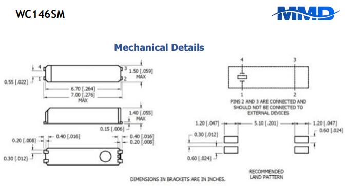 麥迪康進口晶振,WC146SMF-32.768KHZ-T,6G基站晶振尺寸圖