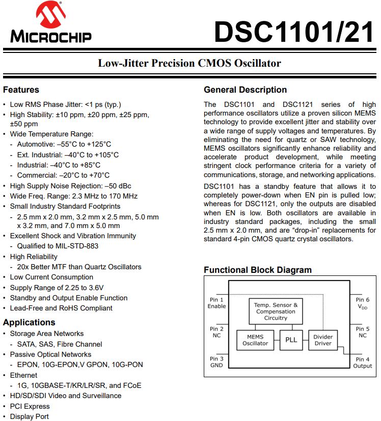 | DSC1121DI5-010.0000 | Microchip Technology | DSC1121 | 10MHz | 2.25 V ~ 3.6 V | 0.098" L x 0.079" W (2.50mm x 2.00mm) |