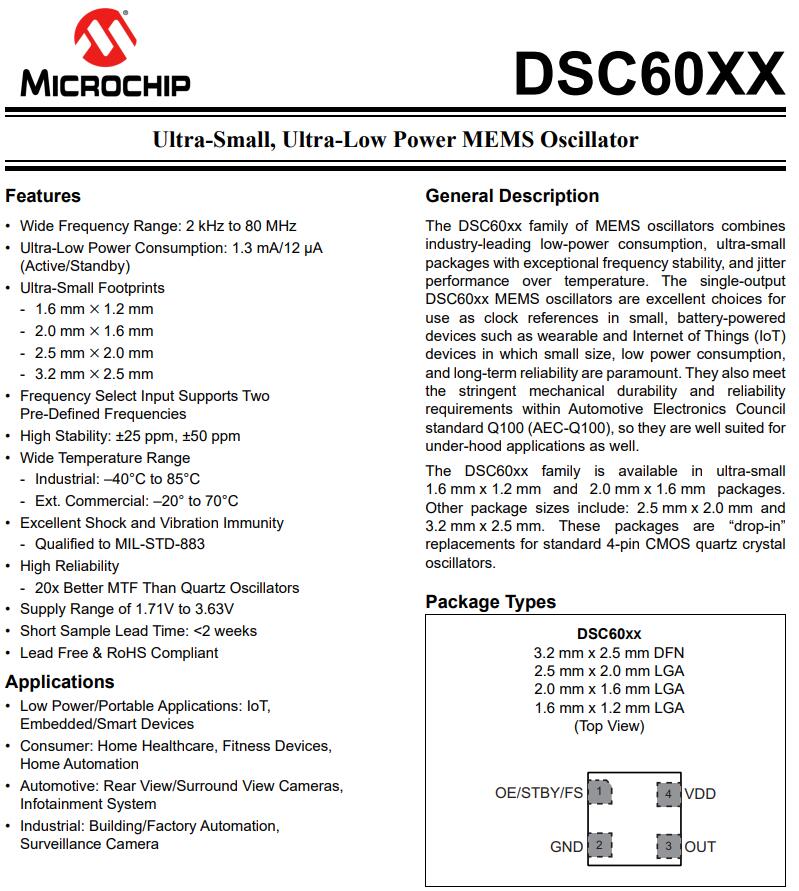 | DSC1124DE1-125.0000T | Microchip Technology | DSC1124 | 125MHz | 2.25 V ~ 3.6 V | 0.098" L x 0.079" W (2.50mm x 2.00mm) |