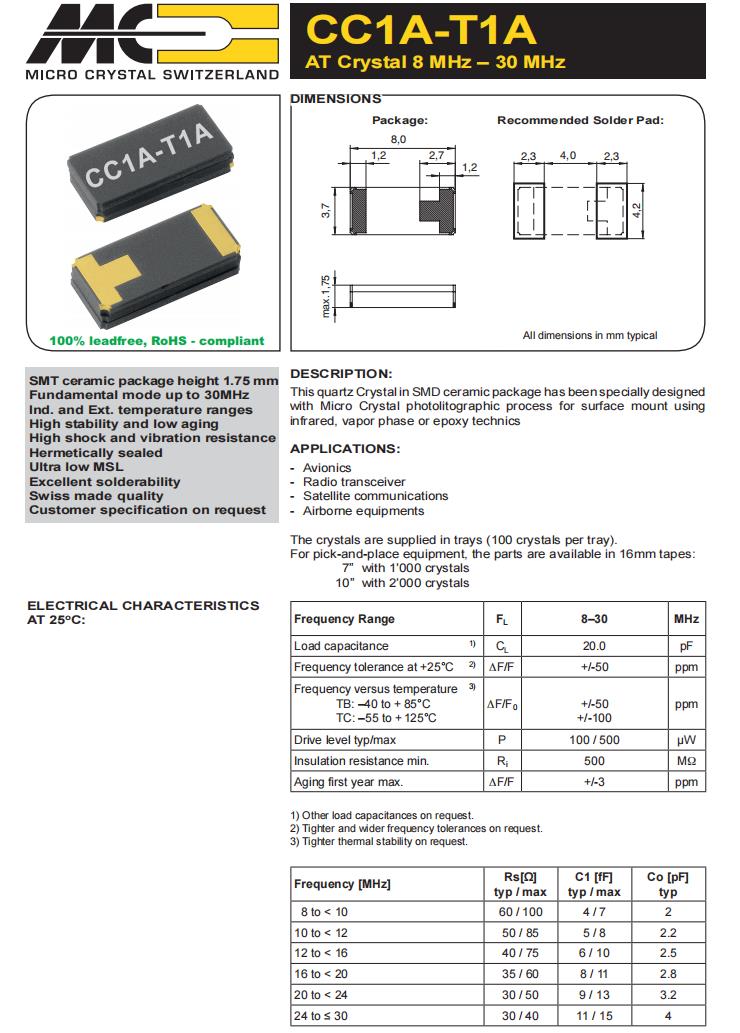 | CC1V-T1A-1.8432MHz-10pF-100PPM-TC-QC | Micro Crystal | 晶體 1.8432 MHz 10.0 pF 100 PPM -55/+125C |