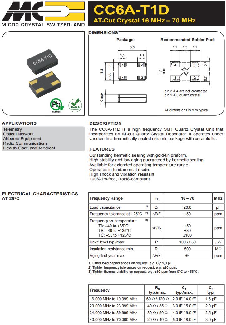 | CC1V-T1A-1.000MHz-10pF-100PPM-TA-QC | Micro Crystal | 晶體 1.000 MHz 10.0 pF +/-100 PPM -40/+85C |