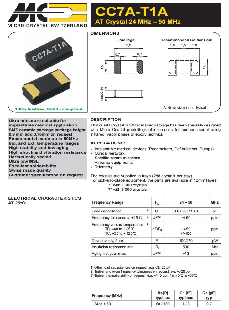 CC7A-T1A-26.000MHz-3.0pF-50ppm-TA-QI,6G以太網(wǎng)晶振,高頻貼片石英晶體,瑞士微晶晶振,CC7A-T1A無源晶振,CC7A-T1A-26.000MHz-3.0pF-50ppm-TA-QI晶振,高頻貼片石英晶振,3215mm晶振,頻率26MHz,負(fù)載3pf,頻率穩(wěn)定性50ppm,工作溫度-40~85°C,無鉛環(huán)保晶振,抗沖擊晶振,6G以太網(wǎng)晶振,遙感勘測晶振,光學(xué)網(wǎng)絡(luò)晶振,機(jī)載設(shè)備晶振.