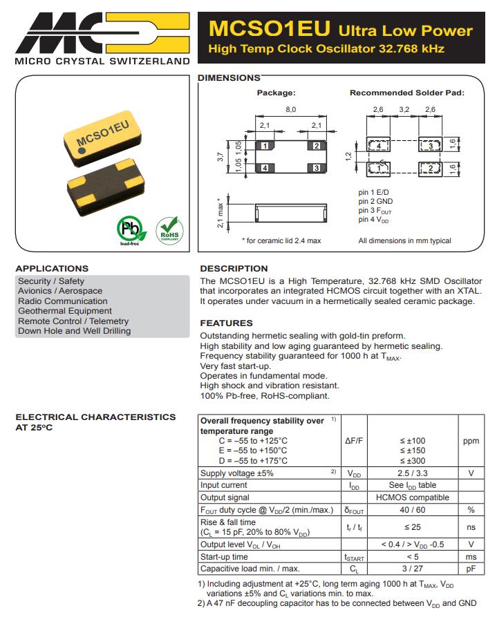 MCSO1EUCV-C-32.768KHZ-E/D-T3,8037mm晶振,6G無線通信晶振,瑞士微晶晶振,MCSO1EU有源晶振,MCSO1EUCV-C-32.768KHZ-E/D-T3晶振,8037mm晶振,石英晶體振蕩器,32.768KHz晶振,電壓3.3V,頻率穩(wěn)定性100ppm,工作溫度-55~125°C,耐高溫晶振,高穩(wěn)定性晶振,6G無線通信晶振,航空電子晶振,遠(yuǎn)程遙控晶振,安保應(yīng)用晶振.