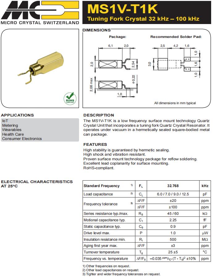 | CC1V-T1A-32.768kHz-9pF-30PPM-TC-QC | Micro Crystal | 晶體 32.768 kHz 9.0 pF +/-30 PPM -55/+125C |