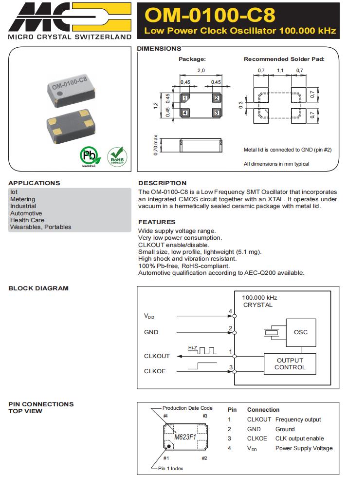 | CC4V-T1A-32.768kHz-12.5pF-20PPM-TC-QC | Micro 晶振 | 晶體 32.768 kHz 12.5 pF +/-20 PPM -55/+125C | Crystals |