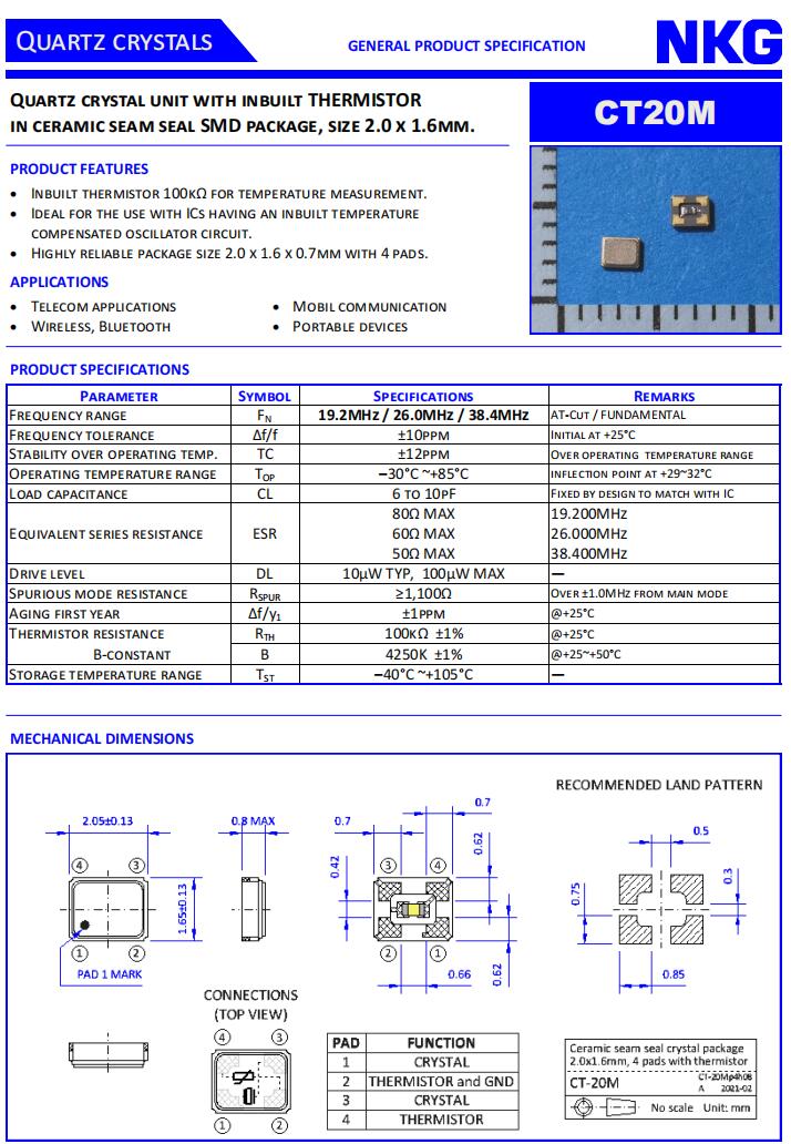 更多>>NKG Crystal|CT20M40.000F10V1Y-100|超小型熱敏晶振