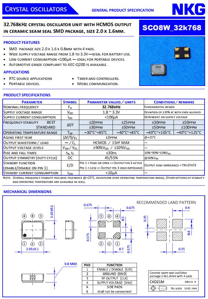 NKG Crystal|SCO8W-32K768-WTS-EXT|2016有源晶振規(guī)格表