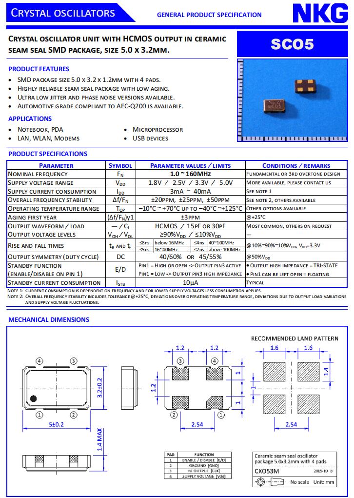 NKG晶振|SCO5-6-A-32.0000-MTS-EXT|5032mm振蕩器規(guī)格表