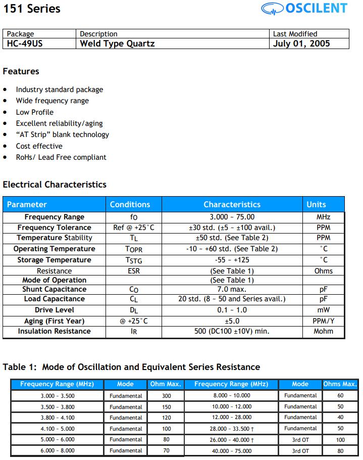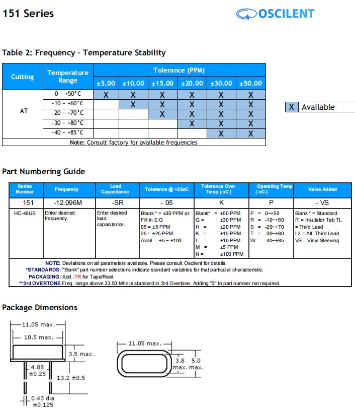 更多>>Oscilent晶振,151-12.096M-20-05KS,6G低成本晶振