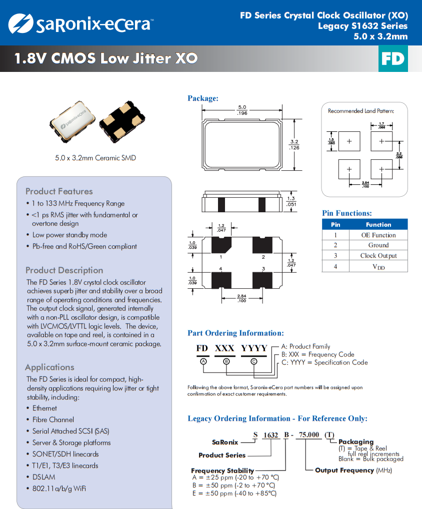 | FD0180008 | Diodes晶振 | FD | XO | 1.8432MHz | CMOS | 3.3V | ±50ppm |