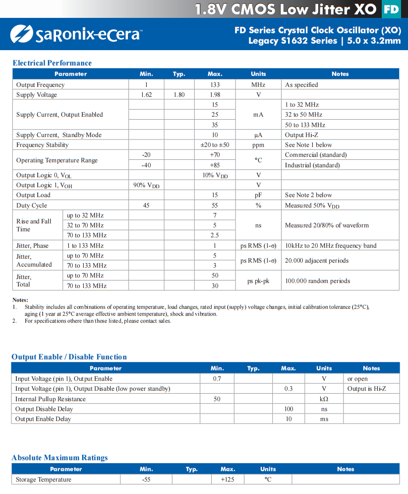 | FDC500026 | Diodes晶振 | FD | XO | 125MHz | CMOS | 1.8V | ±50ppm |