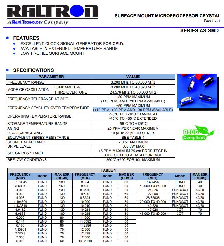 Raltron晶振還通過提供追求快速增長的物聯(lián)網(wǎng)和機(jī)器到機(jī)器市場完整的無源器件封裝,包括晶體, TCXO, SAW濾波器, LTCC濾波器和巴倫以及相應(yīng)IC解決方案規(guī)定的各種.天線、Raltron 晶振公司致力于為符合歐盟議會(huì)和2011年6月08日理事會(huì)2011/65 / EU指令的頻率管理設(shè)備提供限制在電氣和電子設(shè)備中使用某些有害物質(zhì)(RoHS指令).