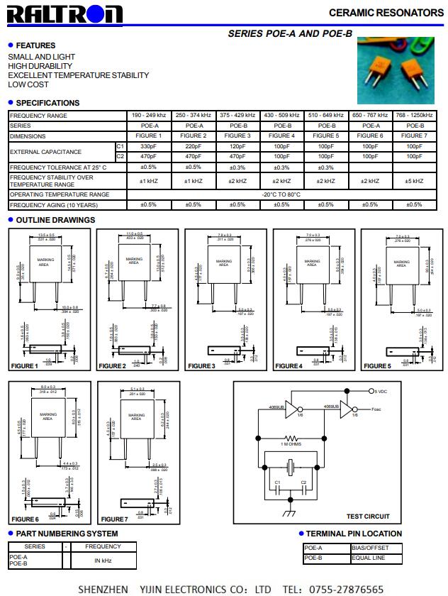 更多>>Raltron晶振,POE-A,POE-B晶振,高頻聲表面濾波器