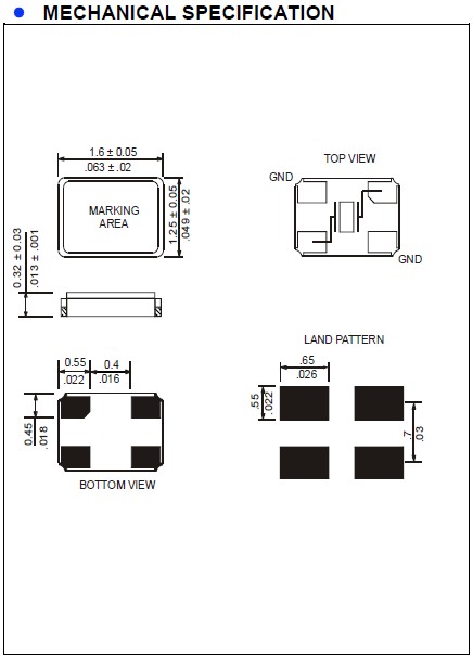 Raltron晶振,R1612-25.000-9-F-1010-TR,6G模塊晶振尺寸圖