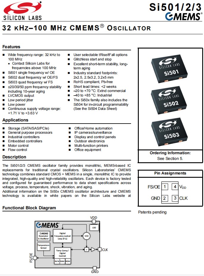 石英晶振Si501 CMEMS振蕩器系列為傳統(tǒng)的石英晶體振蕩器提供了單片的,基于mems的IC替代品。硅實驗室的CMEMS技術將標準CMOS+MEMS結合在一個單片IC集成電路中,提供集成、高質量和高可靠性的振蕩器。每個設備都經過工廠測試和配置,以保證其在電壓、工藝、溫度、沖擊、振動和老化等方面的性能。