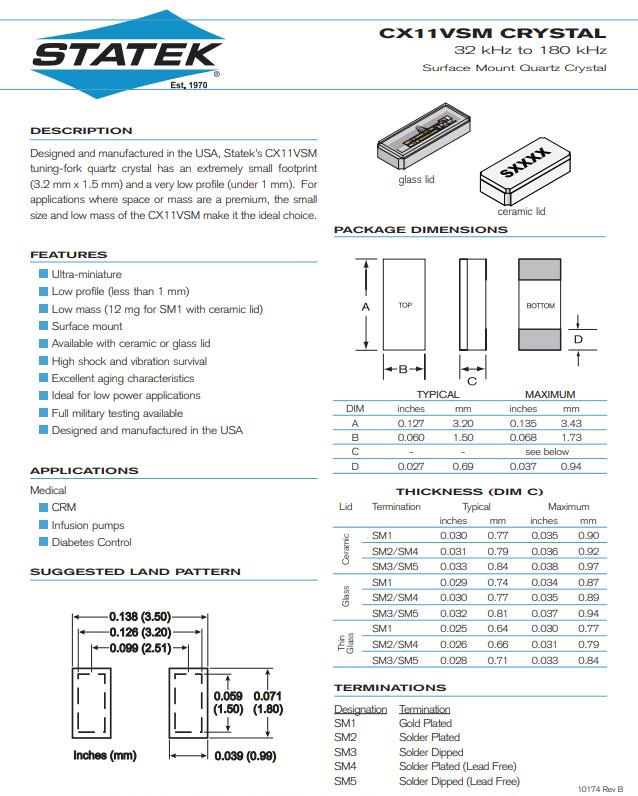 美國STATEK晶?振,CX11VSM晶振,3215晶體諧振器超小型表面貼片型SMD晶振,最適合使用在汽車電子領(lǐng)域中,也是特別要求高可靠性的引擎控制用CPU的時鐘部分.