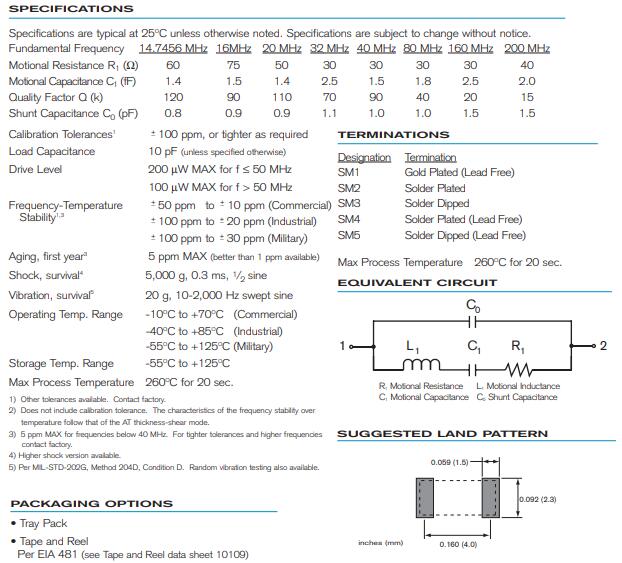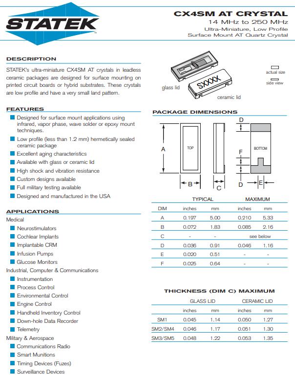 更多>>STATEK晶振,CX4SM晶振,14~250MHZ晶振